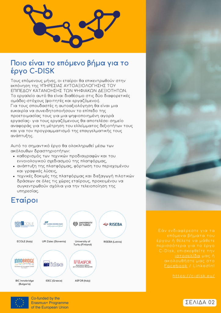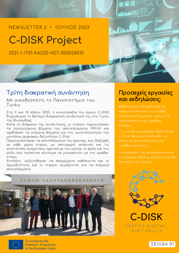 Δείτε παρακάτω το δεύτερο newsletter του προγράμματος C-DISK το οποίο μιλάει για τη Συλλογή Δεξιοτήτων που αναπτύχθηκε, ενώ αναφέρεται και στο δεύτερο meeting της ομάδας του προγράμματος στο Turku της Φινλανδίας!