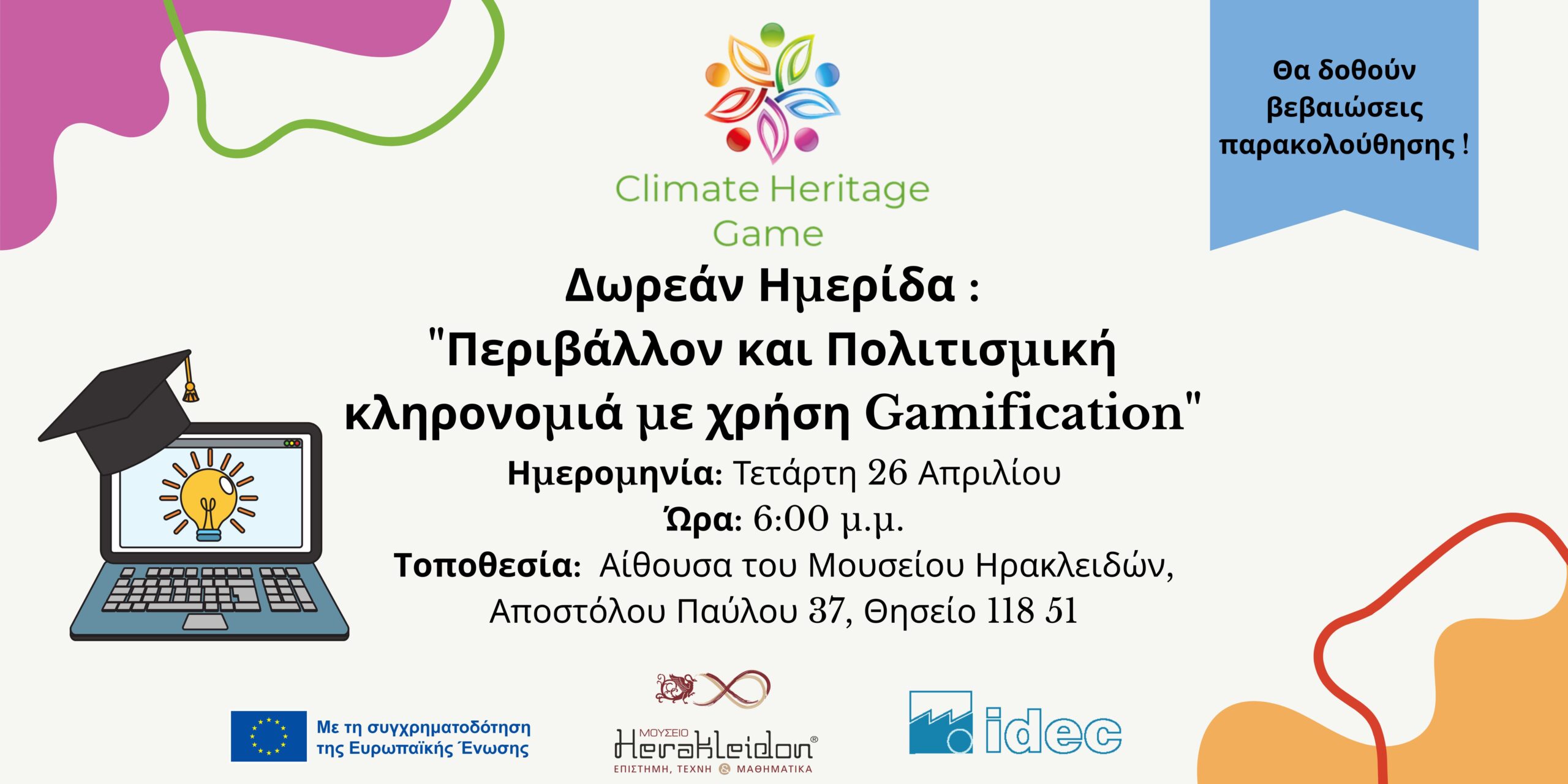 Η IDEC A.E. διοργανώνει δωρεάν εκδήλωση με τίτλο: «Περιβαλλοντική και Πολιτισμική κληρονομιά με χρήση Gamification»
