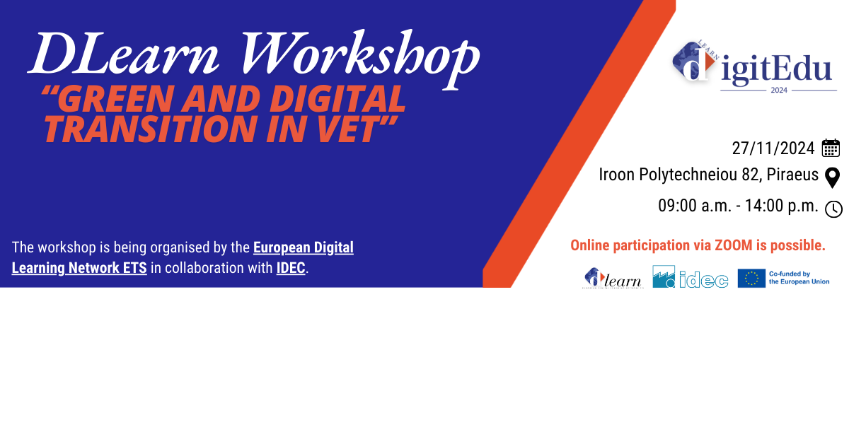 The workshop is being organised by the European Digital Learning Network ETS in collaboration with IDEC.